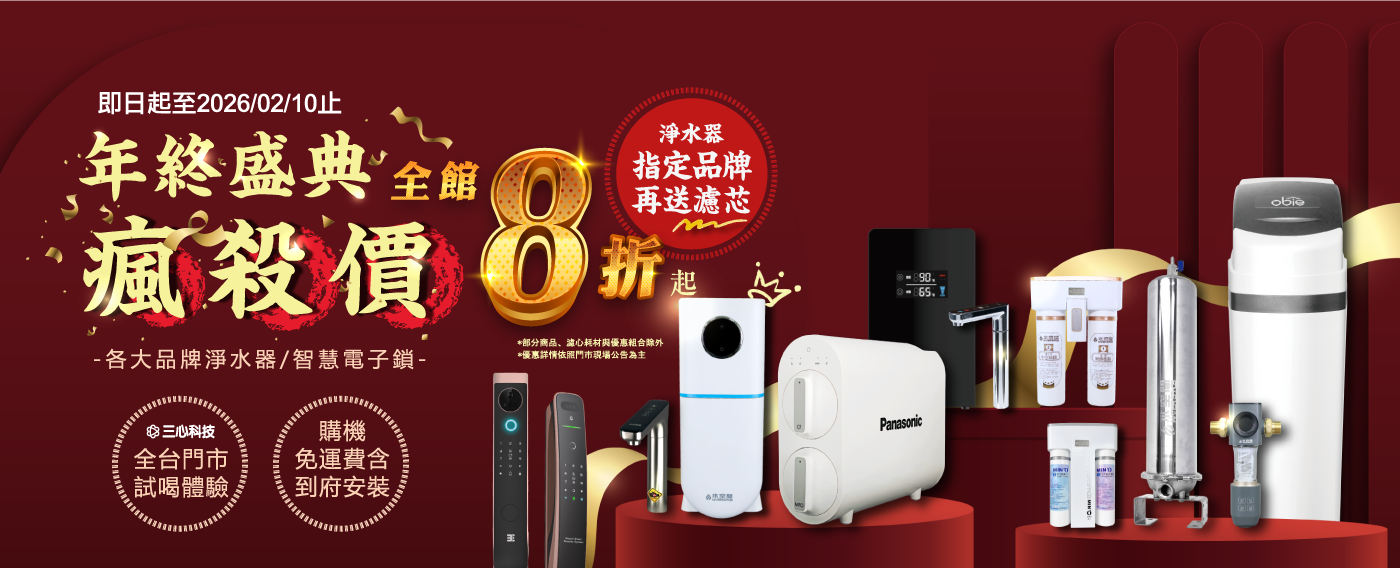 年終舊換新~早鳥優惠不必等! 淨水器換新、傳統門鎖換電子鎖~親洽三心科技生活館讓您換新好滿足~省荷包更開心!