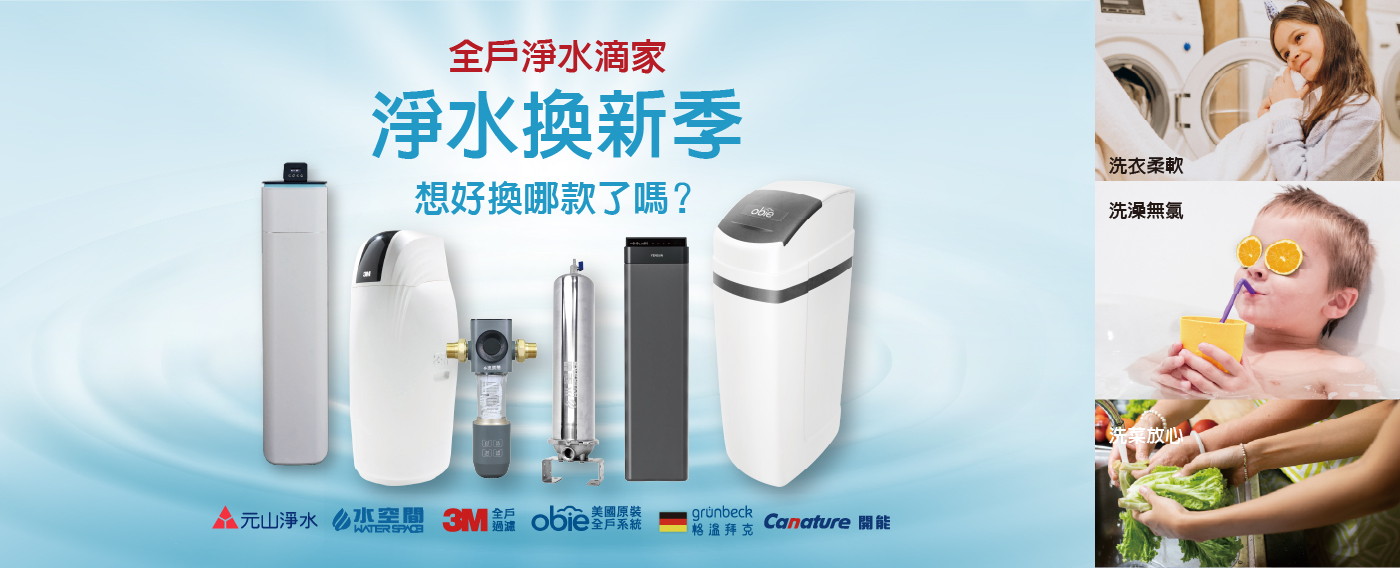 -全戶軟水機:透過離子交換樹脂去除水中鈣鎂離子,避免產生水垢。這不僅能保護家電、延長熱水器壽命,還能讓你真實感受到「好水質」帶來的肌膚滑順、頭髮柔亮、衣物柔軟等明顯差異。