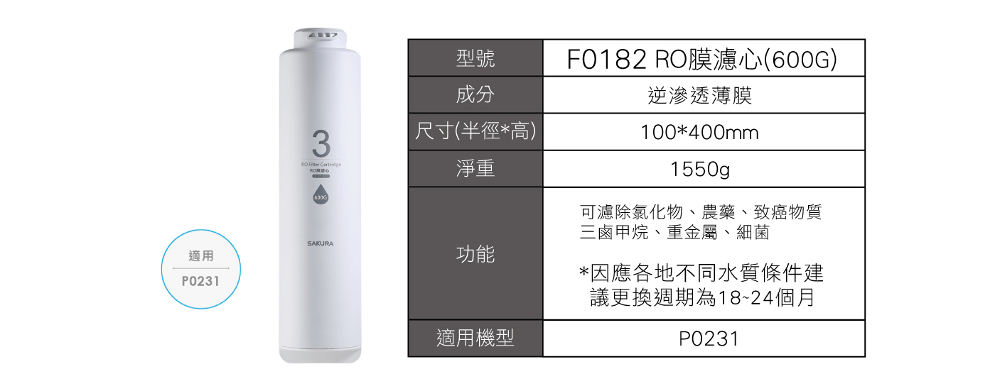 櫻花淨水 F0182 RO膜濾心(P0231適用)