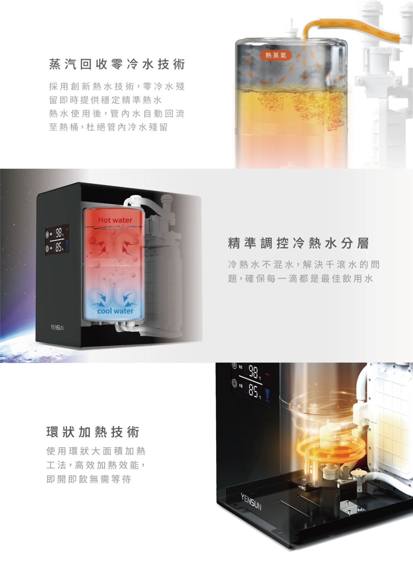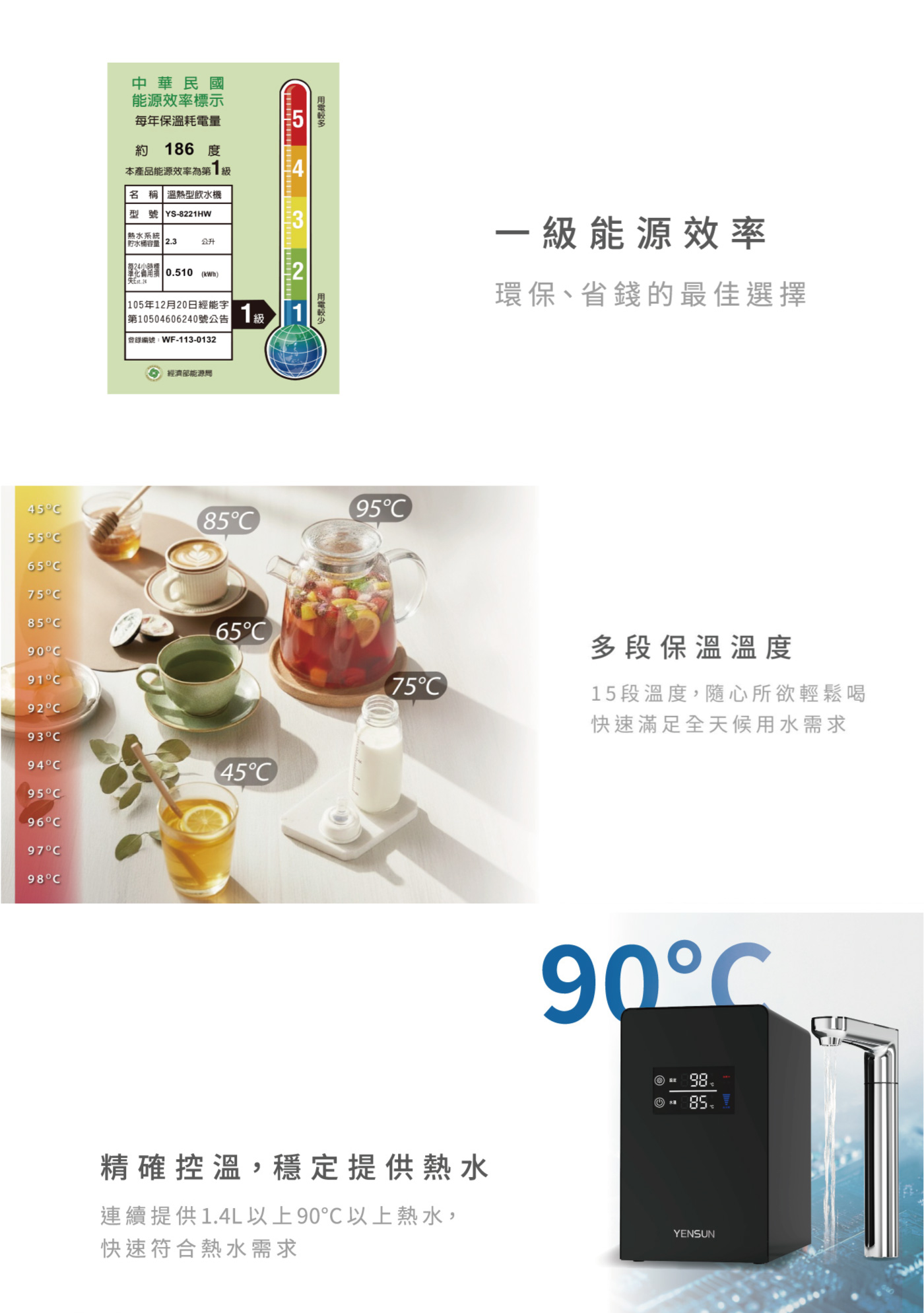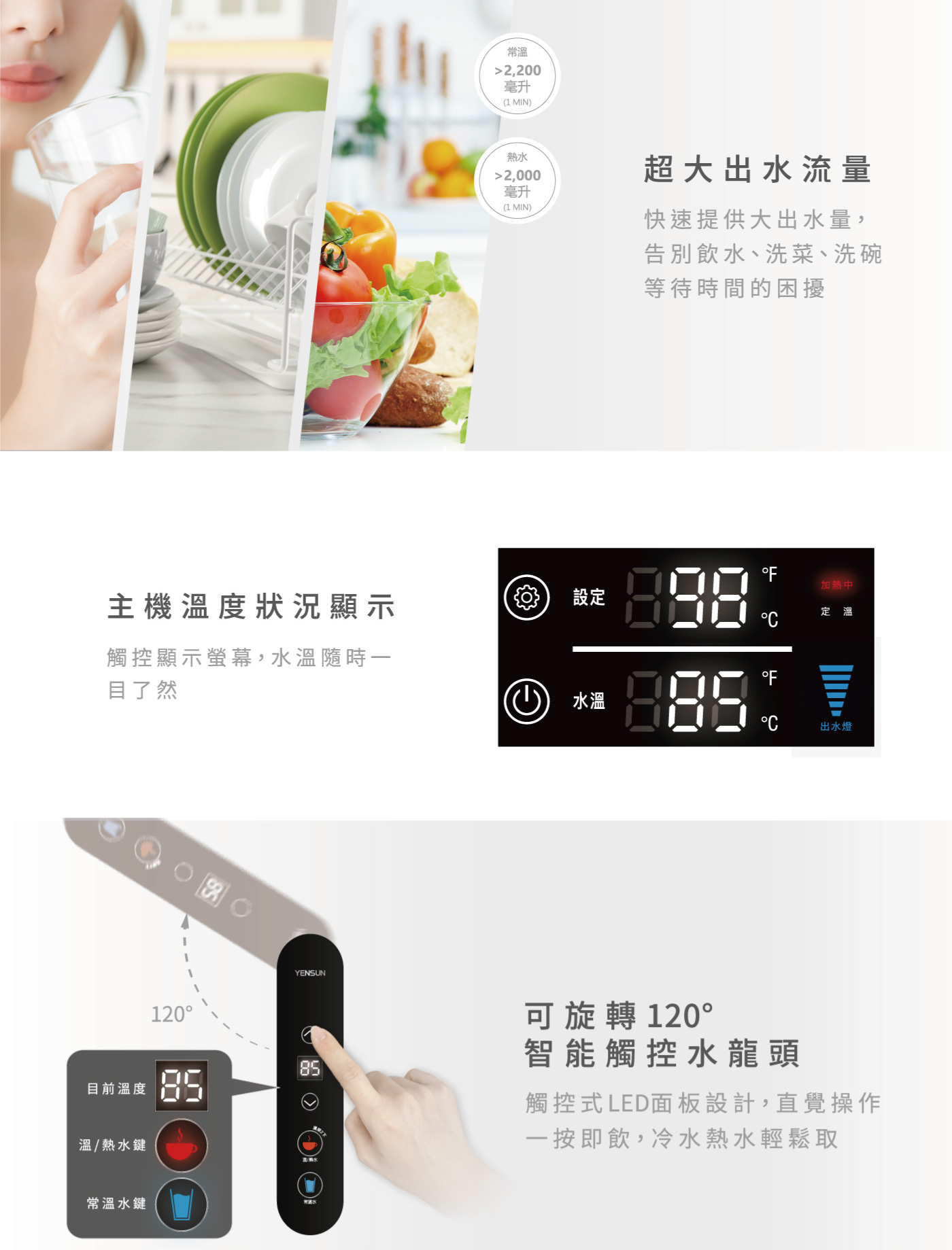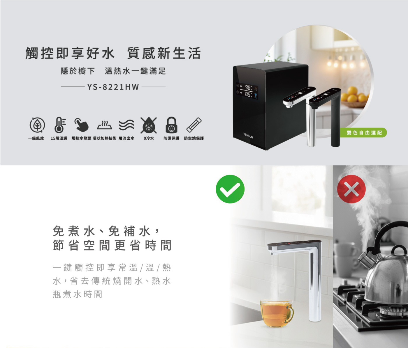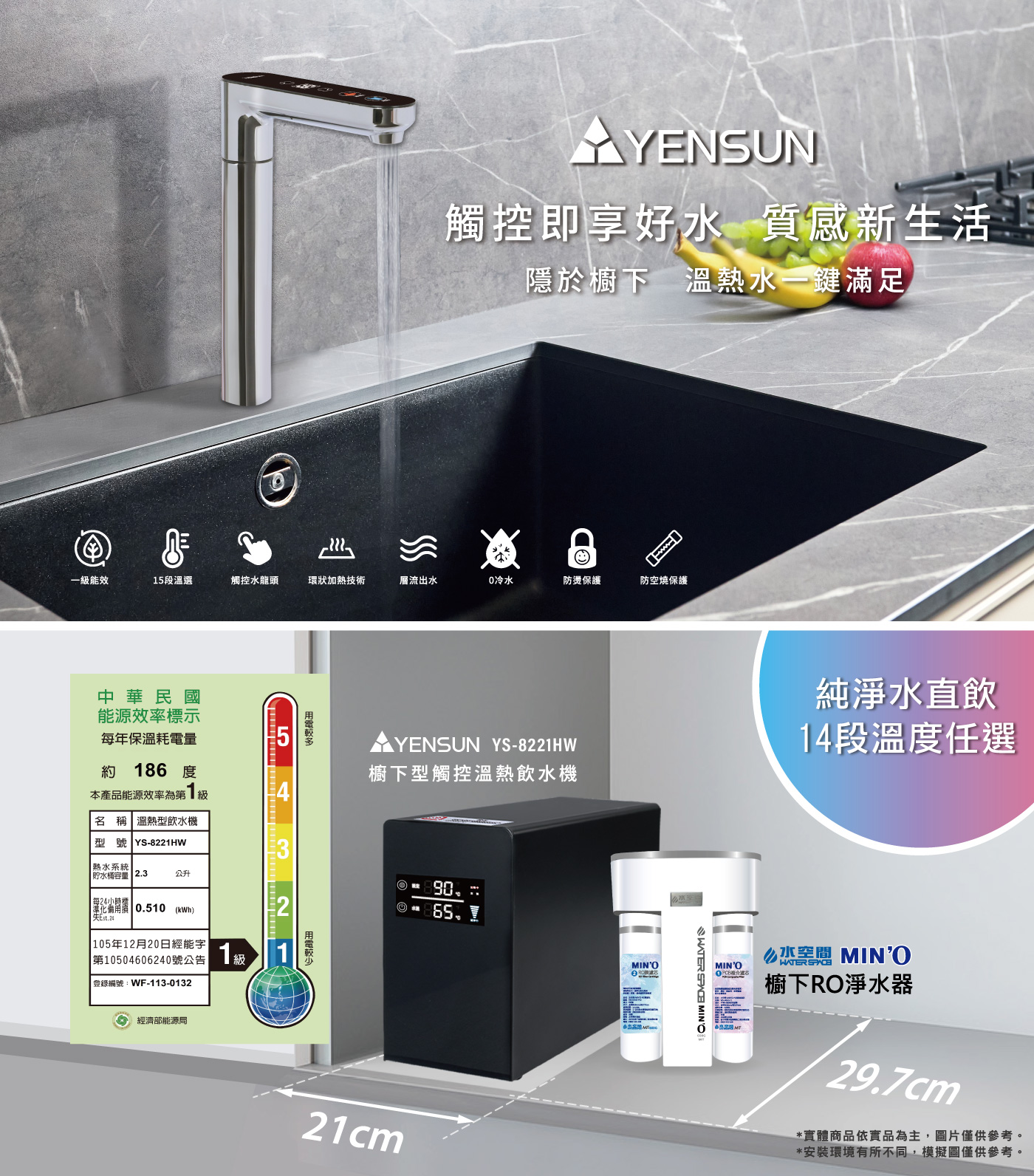 元山 淨水雙溫組-元山櫥下型觸控加熱器搭配水空間櫥下直出RO淨水器(WS-MinO-R2+YS-8221HW)
