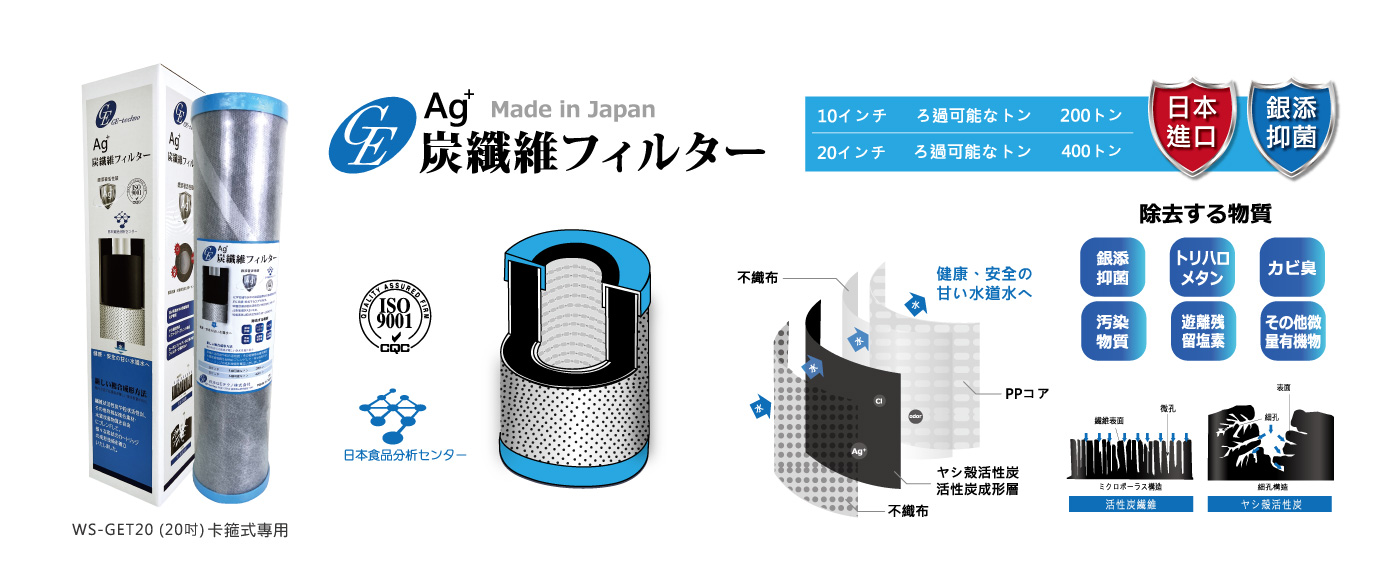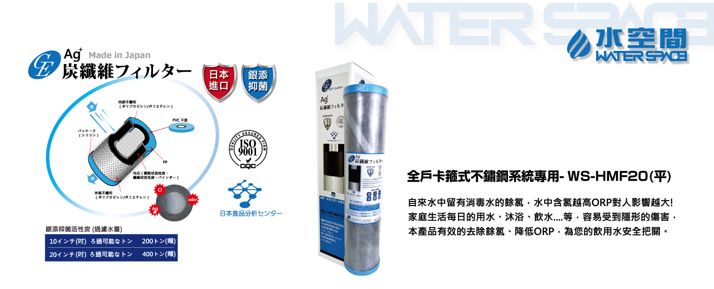 水空間 WS-HMF20(卡箍式20吋專用)日本進口GE-techno銀添活性碳濾芯
