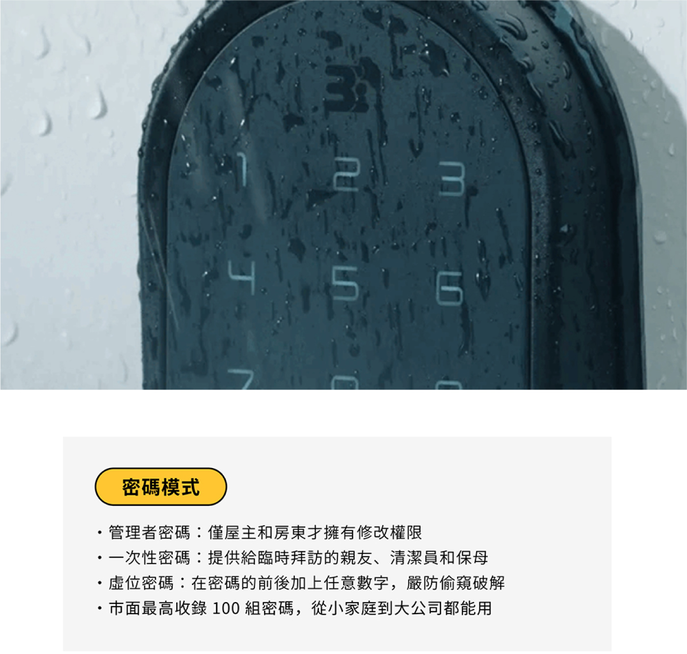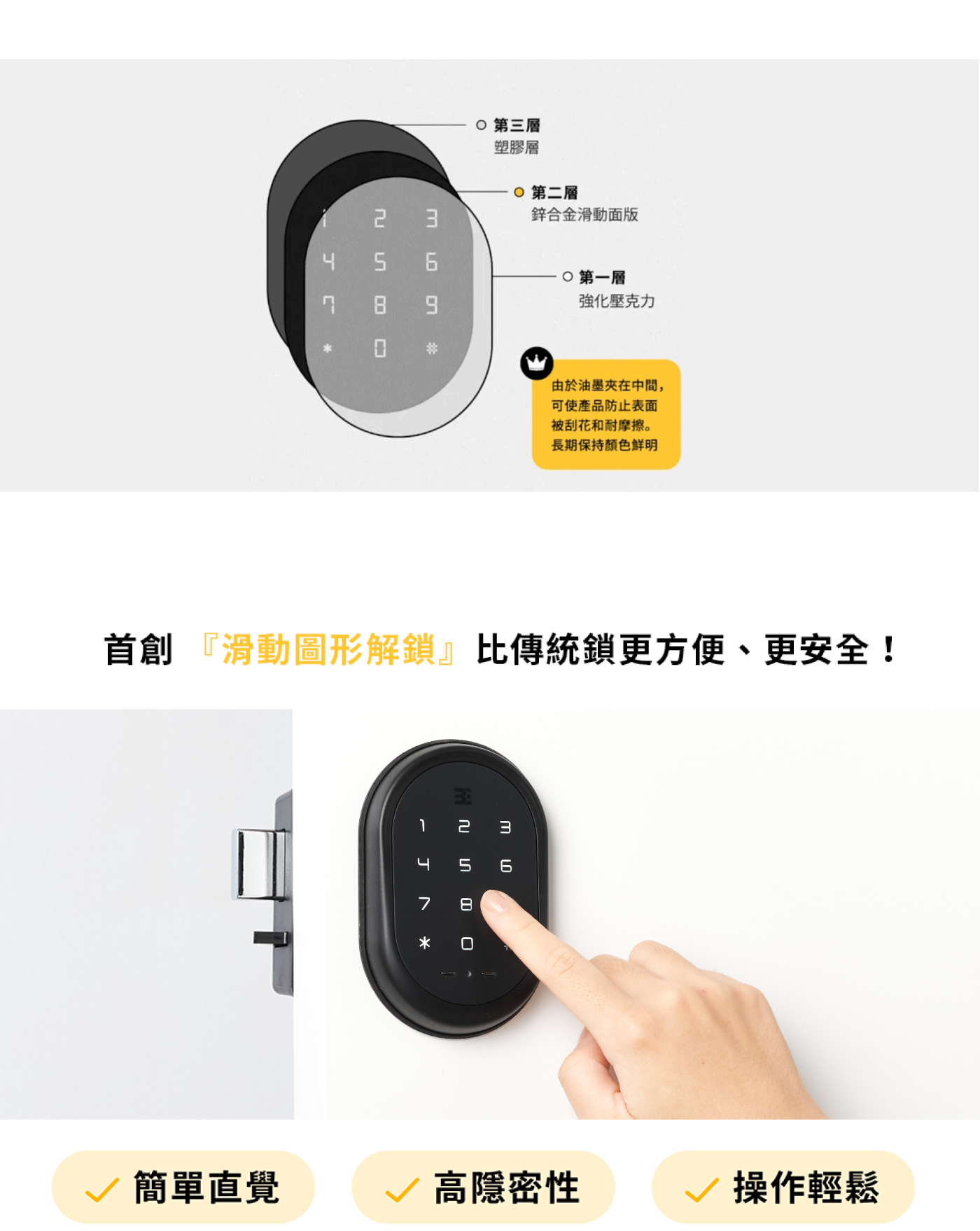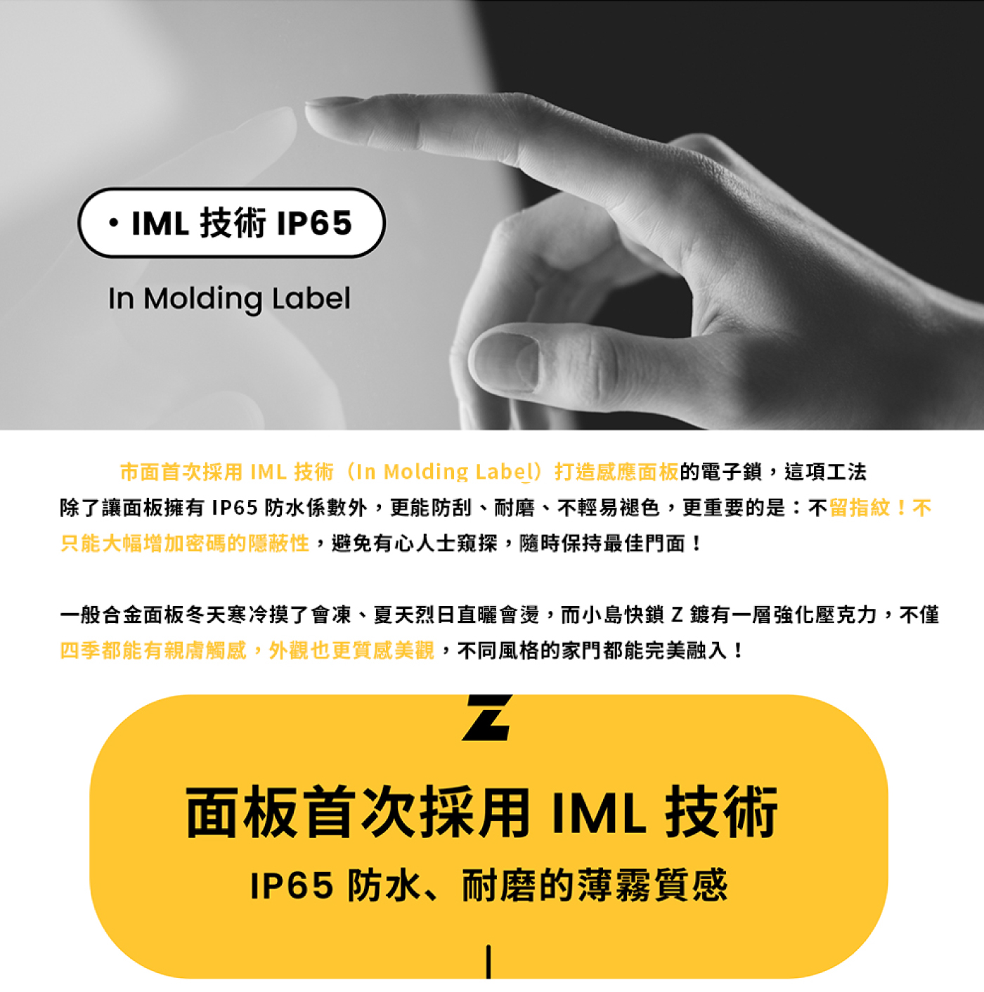 ▸面板採用IML技術,不留指紋、大幅增加密碼隱蔽性