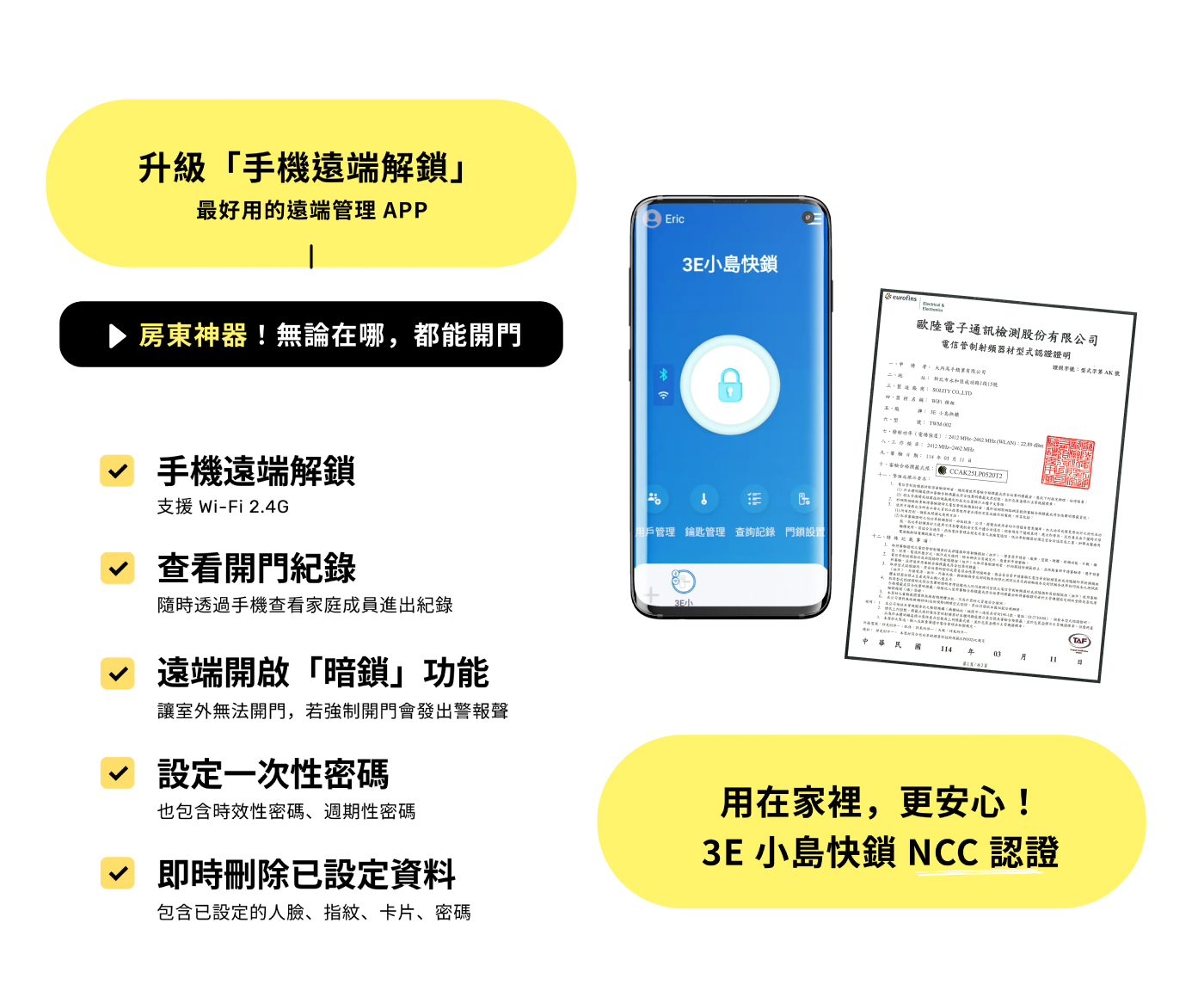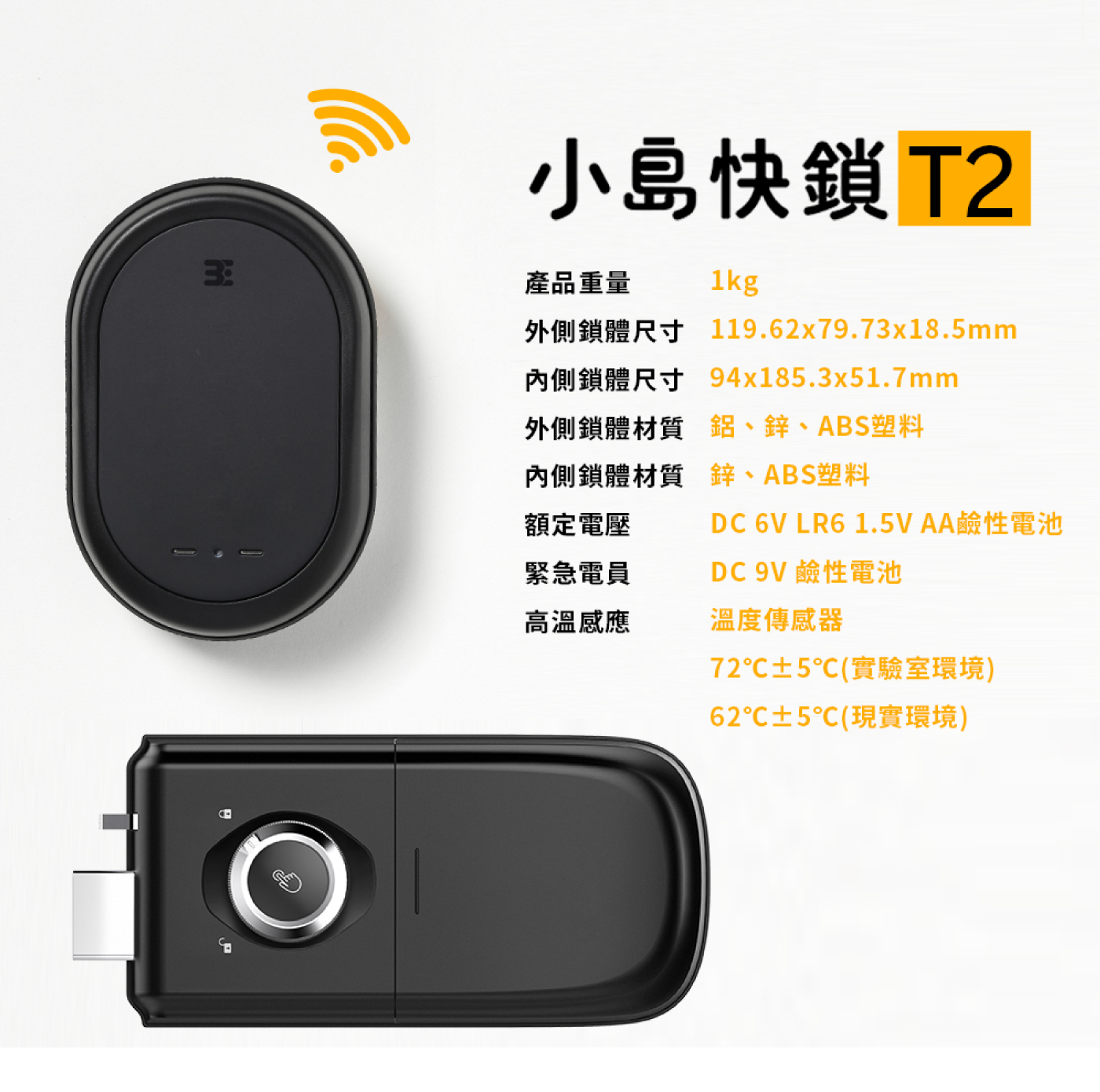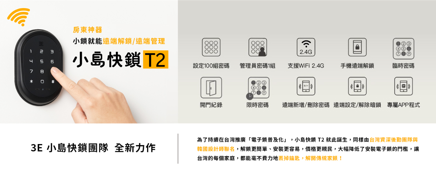 3E小島快鎖 T2 WiFi版電子鎖(4合1)