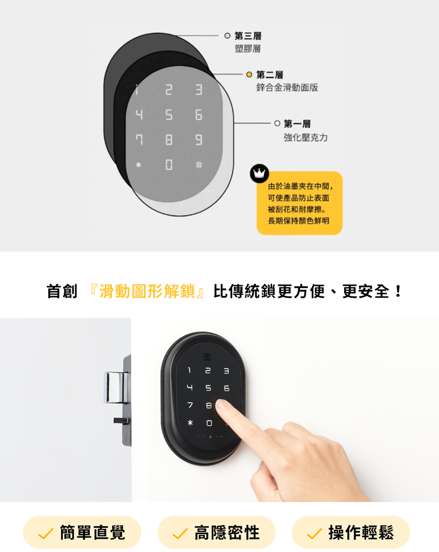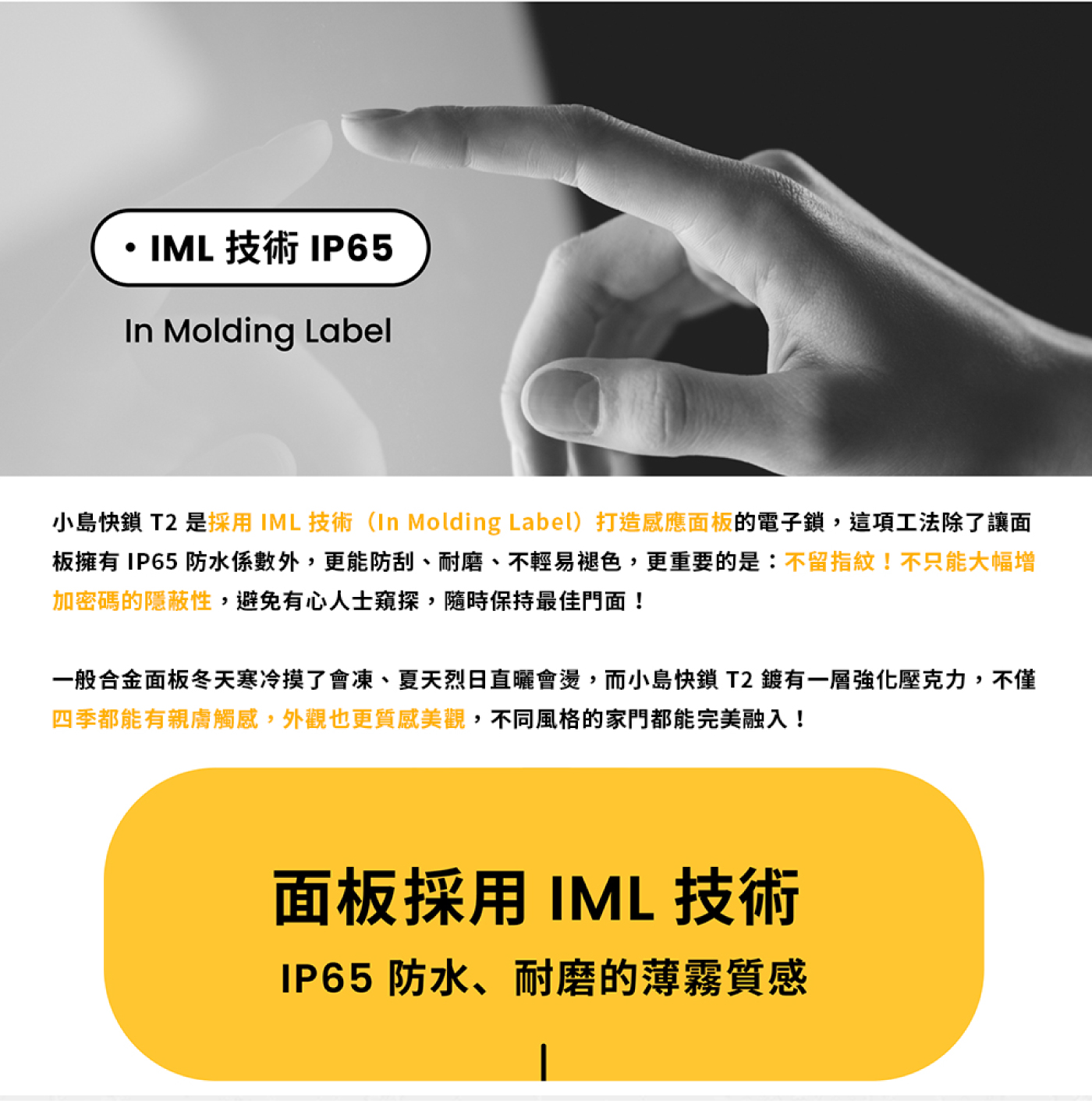 ▸面板採用IML技術,不留指紋、大幅增加密碼隱蔽性