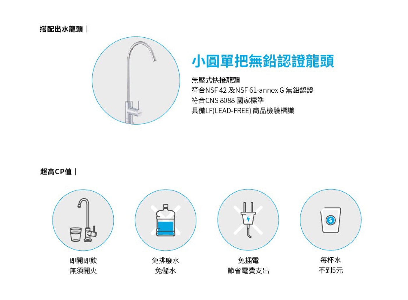 ▸具抗鏽力、有效軟化水垢,可去除重金屬鉛、銅、鎘、汞及大腸桿菌