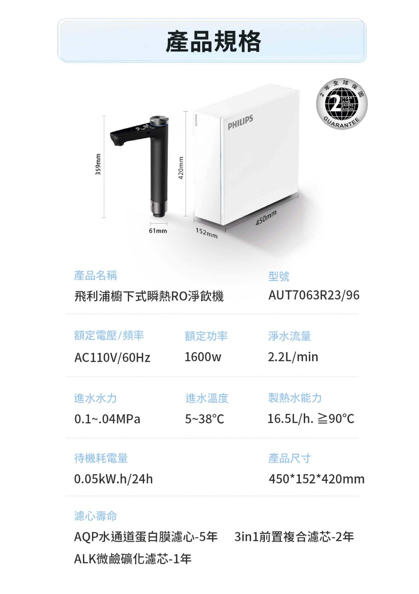 PHILIPS 飛利浦 AUT7063 小淨靈 瞬熱式櫥下淨水器(淨熱合一)