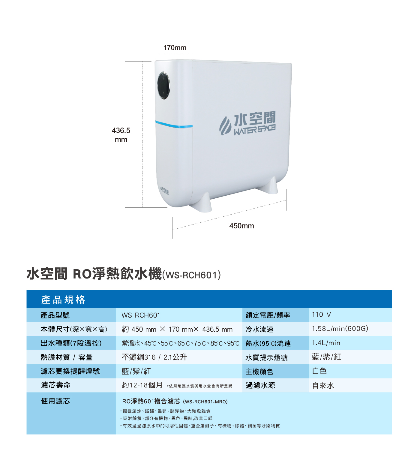 水空間 WS-RCH601 RO淨熱飲水機(六機合一)
