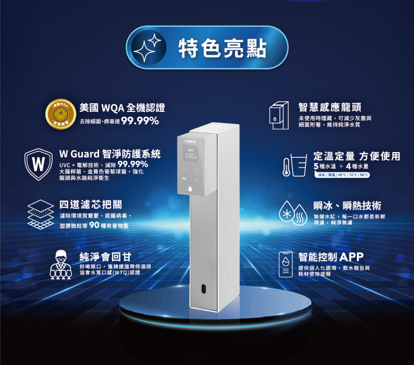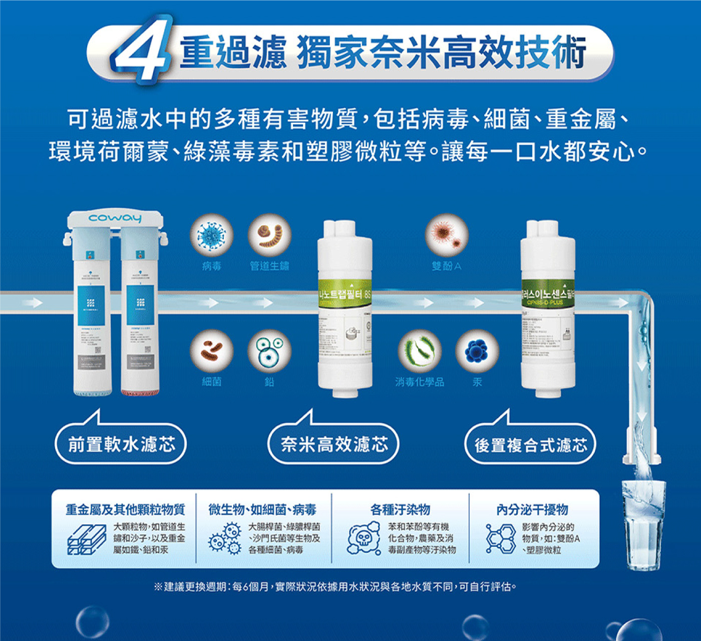 ▸四道濾芯純淨回甘-奈米過濾系統,可濾除99.9%有害物質