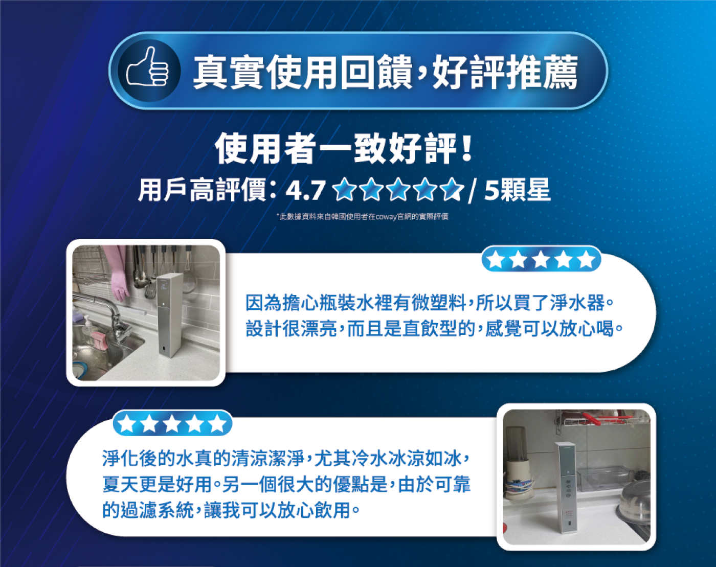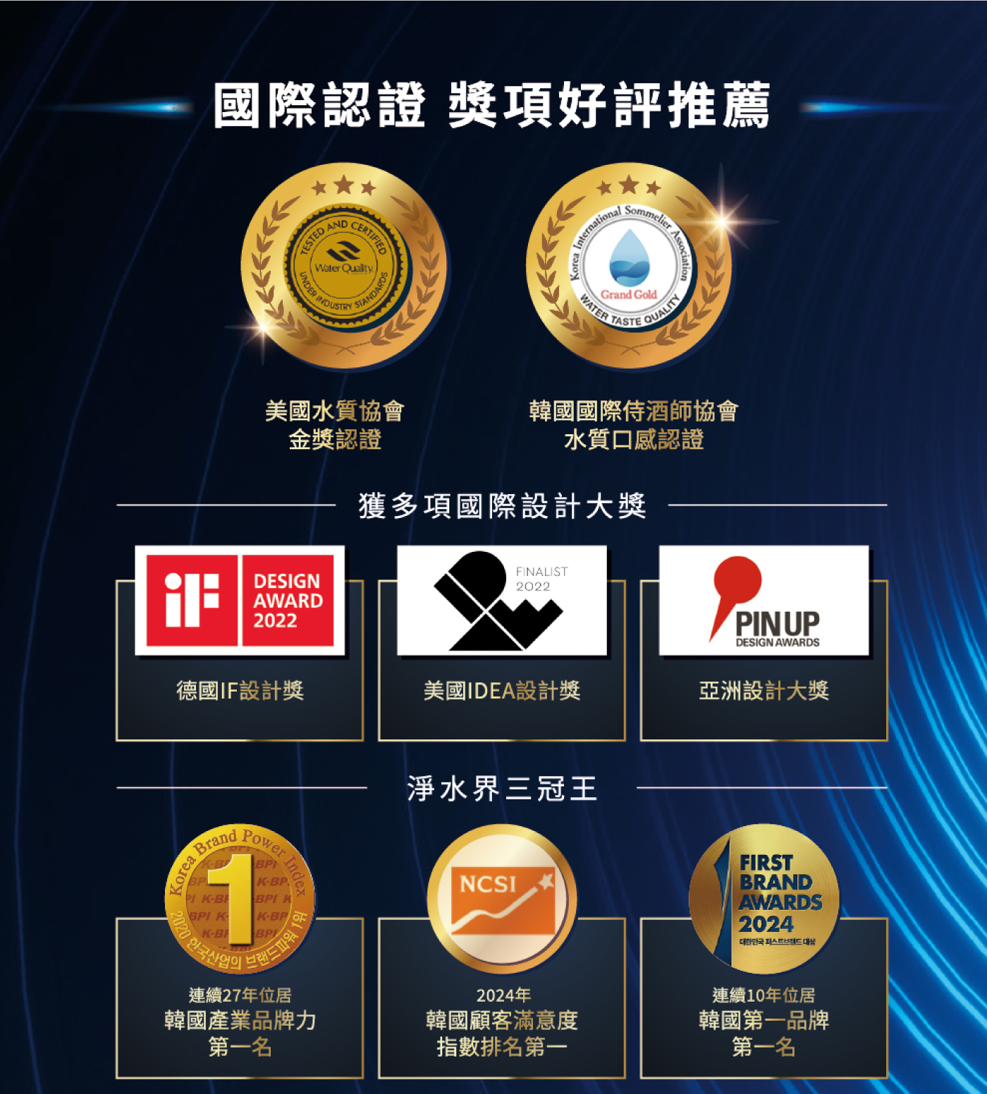 ▸經水質協會(WQA)認證的99%微塑膠去除率,獲得韓國國際侍酒師協會水質口感(WTQ)認證