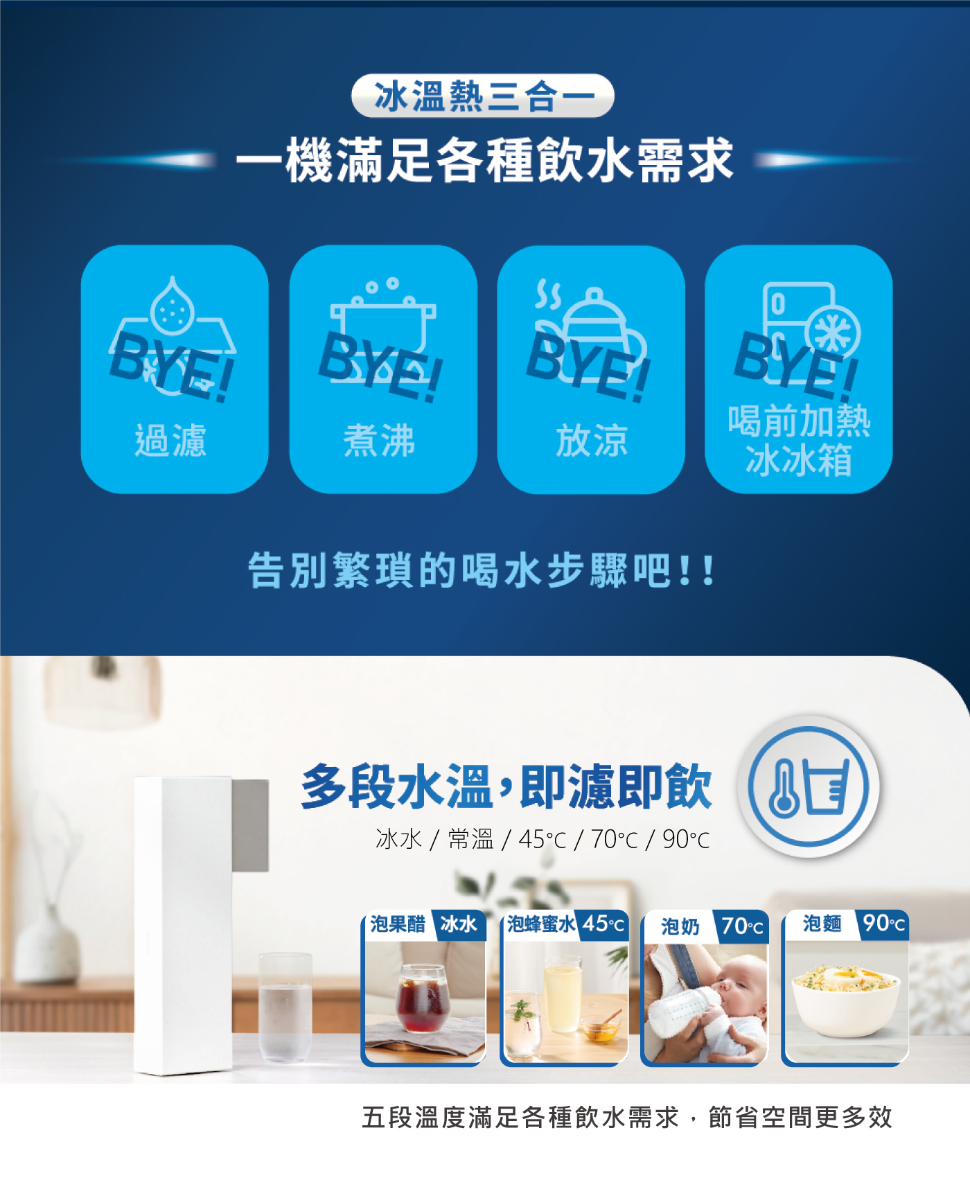▸5段水量:冰水/常溫 / 熱水(45 °C 、70 °C 、90°C)