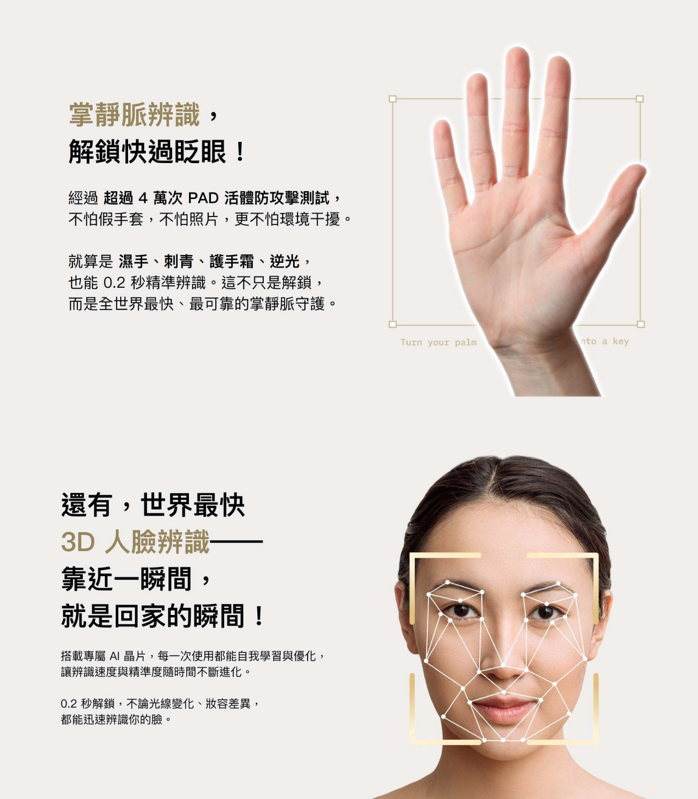 ▸AI人臉辨識掌靜脈秒解鎖,首款動畫智慧靜音電子鎖
