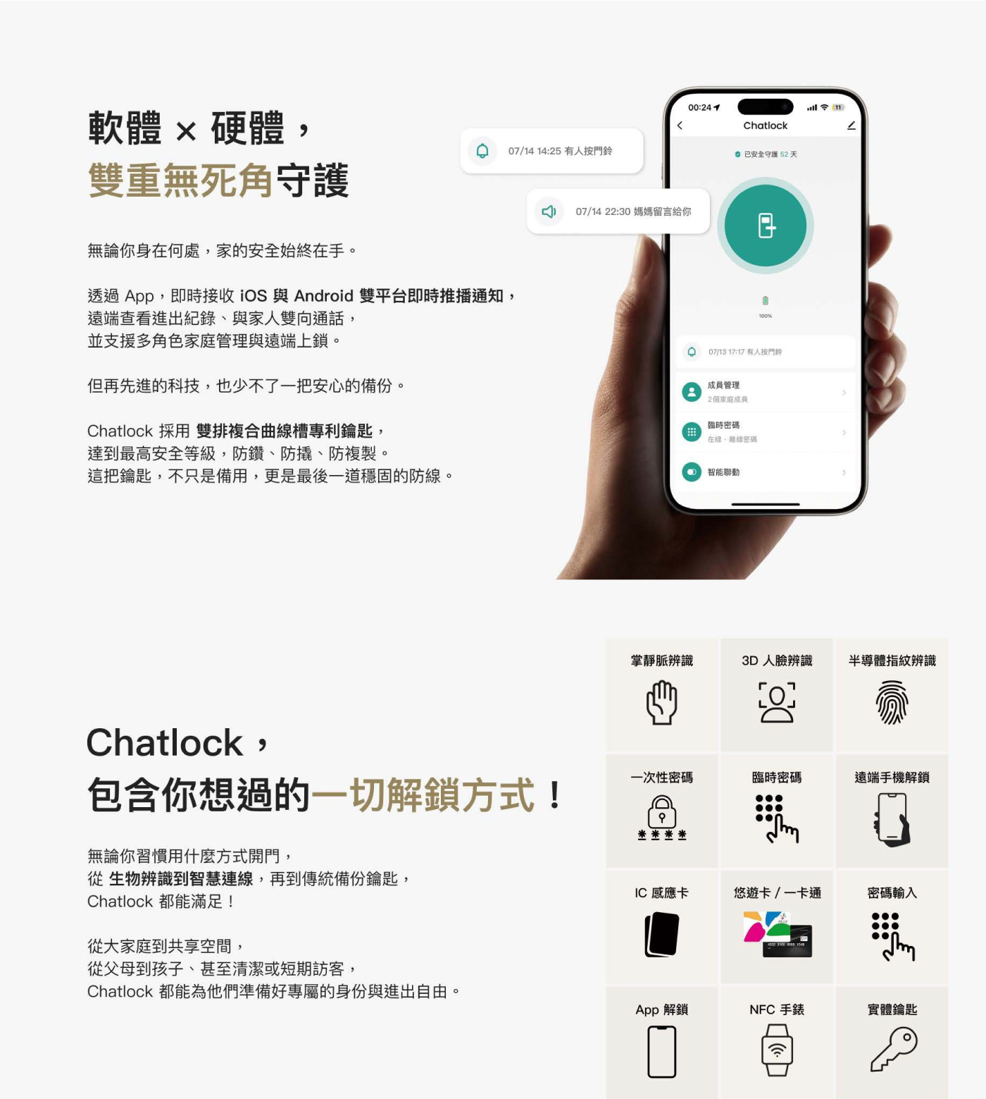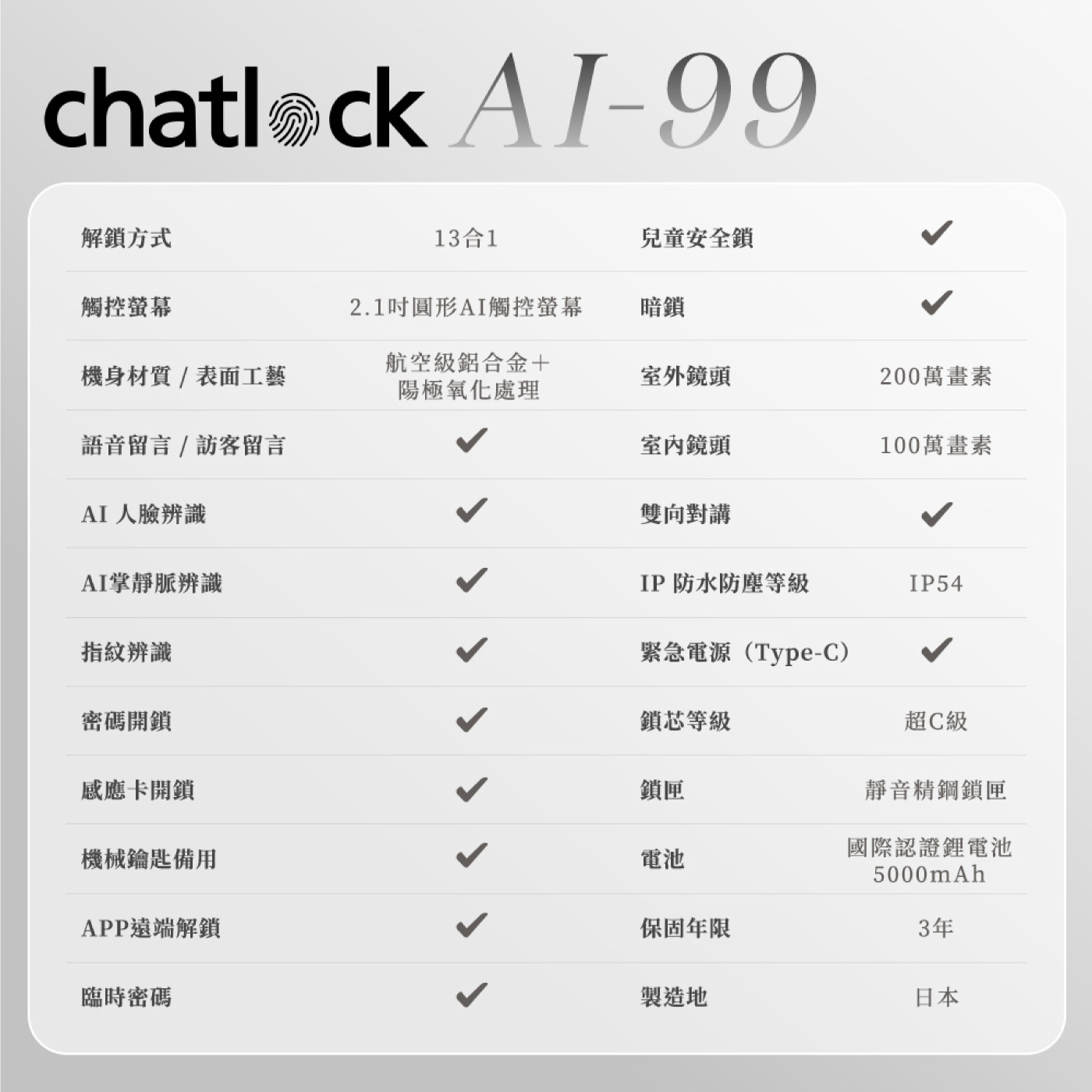 chatlock AI-99 十三合一人臉掌靜脈電子鎖(琉金大理石)