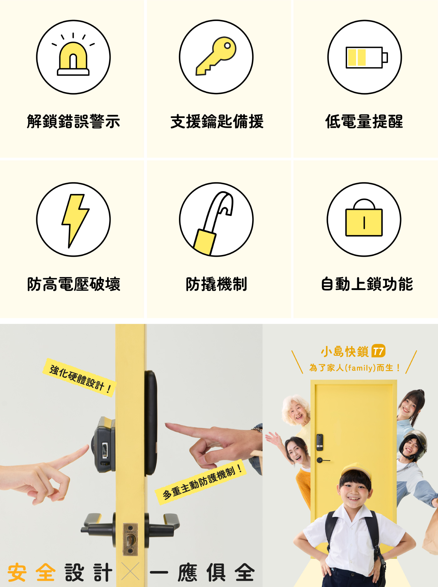 3E小島快鎖F-T7 電子鎖/輔助鎖(7合1)