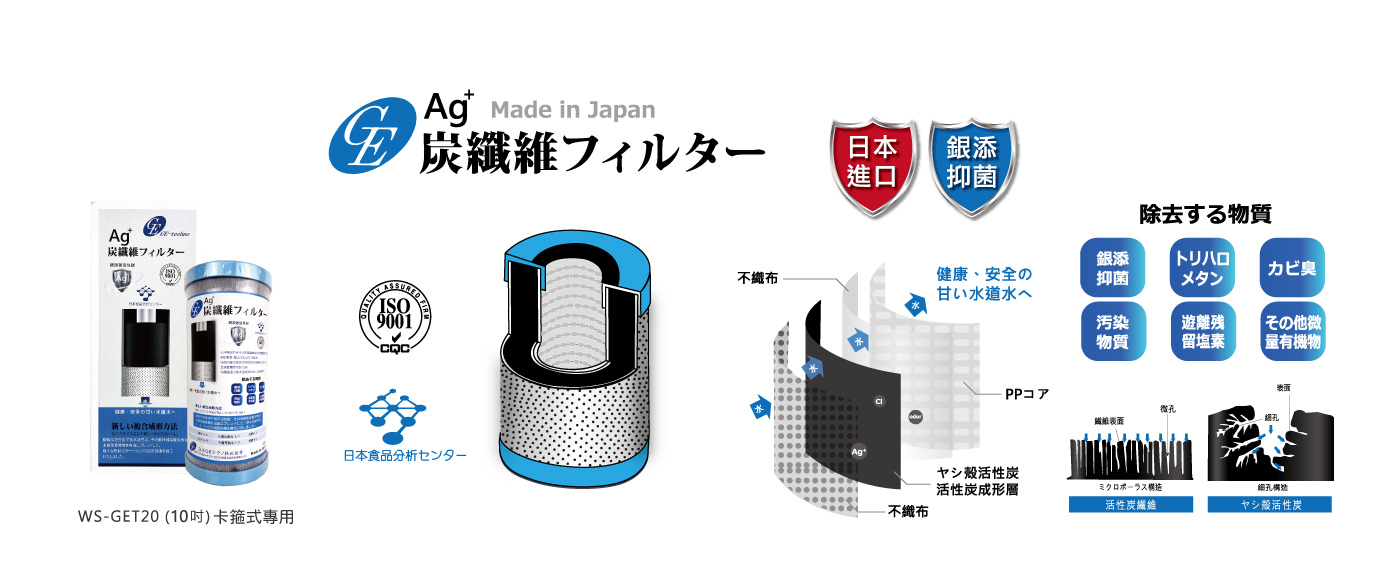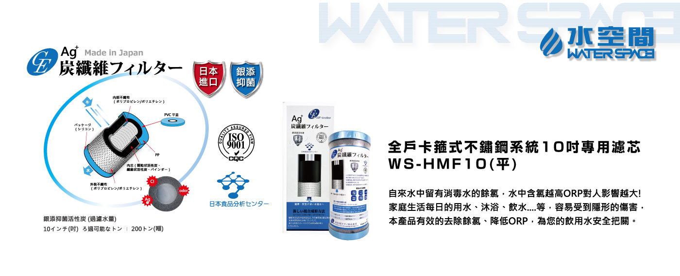 水空間 WS-HMF10 日本進口GE-techno銀添活性碳濾芯(平頭-卡箍式10吋專用)